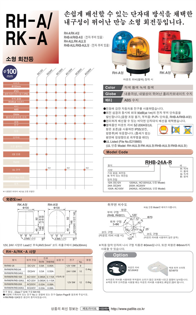 »óǰ¸í : RHB-24A-Y  Á¦Á¶¿ø:  PATLITE ÆäÆ®¶óÀÌÆ®