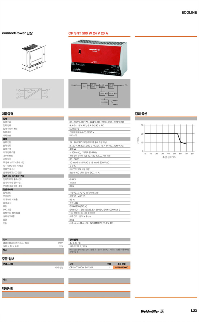 »óǰ¸í : CP SNT 500W 24V 20A  Á¦Á¶¿ø:  Weidmuller ¹ÙÀ̵å¹Ä·¯