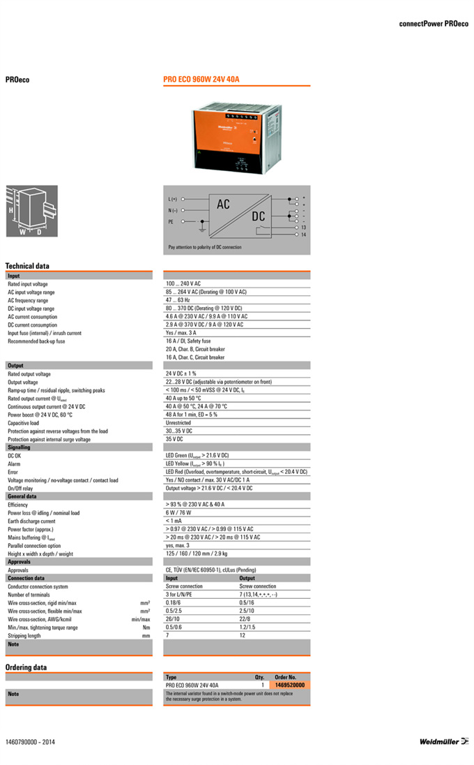 »óǰ¸í : PRO ECO 960W 24V 40A  Á¦Á¶¿ø:  Weidmuller ¹ÙÀ̵å¹Ä·¯