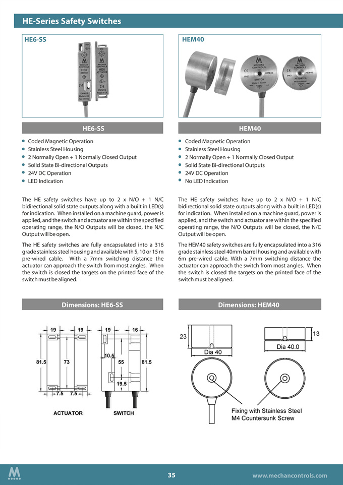 ÇöÀçÀ§Ä¡ : HOME > MechanControls > Magnetic Safety Switches > HE-Series > HE6SS