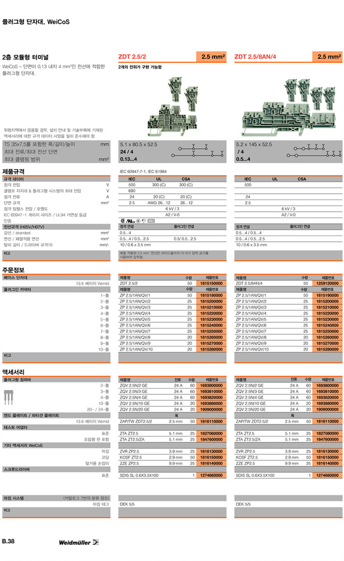 »óǰ¸í : ZDT 2.5/2  Á¦Á¶¿ø:  Weidmuller ¹ÙÀ̵å¹Ä·¯