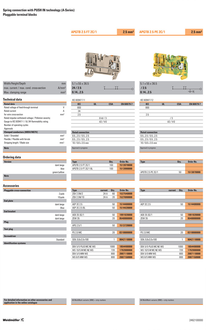 »óǰ¸í : APGTB 2.5 PE 2C/1  Á¦Á¶¿ø:  Weidmuller ¹ÙÀ̵å¹Ä·¯