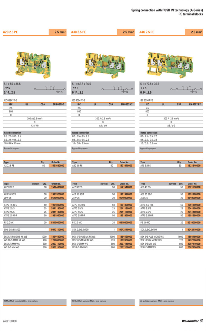 »óǰ¸í : A3C 2.5 PE  Á¦Á¶¿ø:  Weidmuller ¹ÙÀ̵å¹Ä·¯