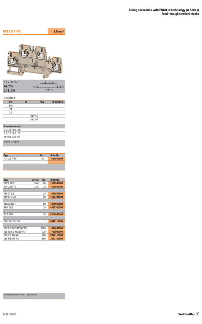 »óǰ¸í : A2T 2.5 FT-PE  Á¦Á¶¿ø:  Weidmuller ¹ÙÀ̵å¹Ä·¯