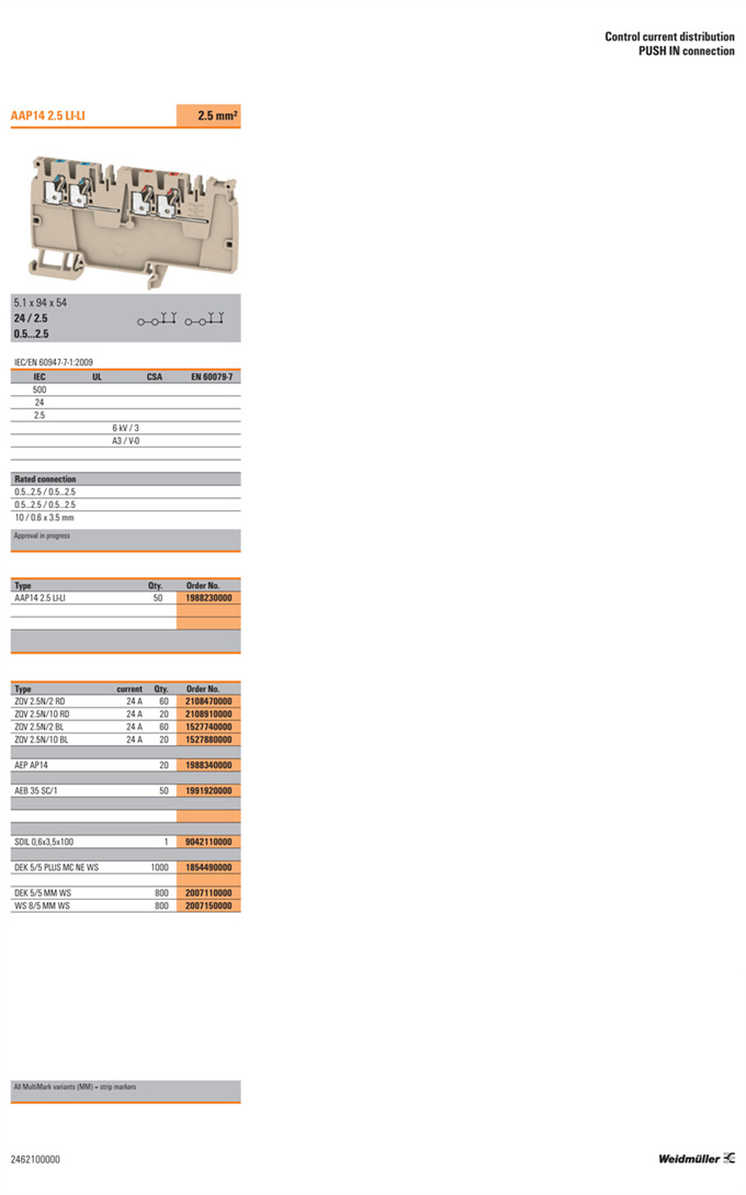»óǰ¸í : AAP14 2.5 LI-LI  Á¦Á¶¿ø:  Weidmuller ¹ÙÀ̵å¹Ä·¯