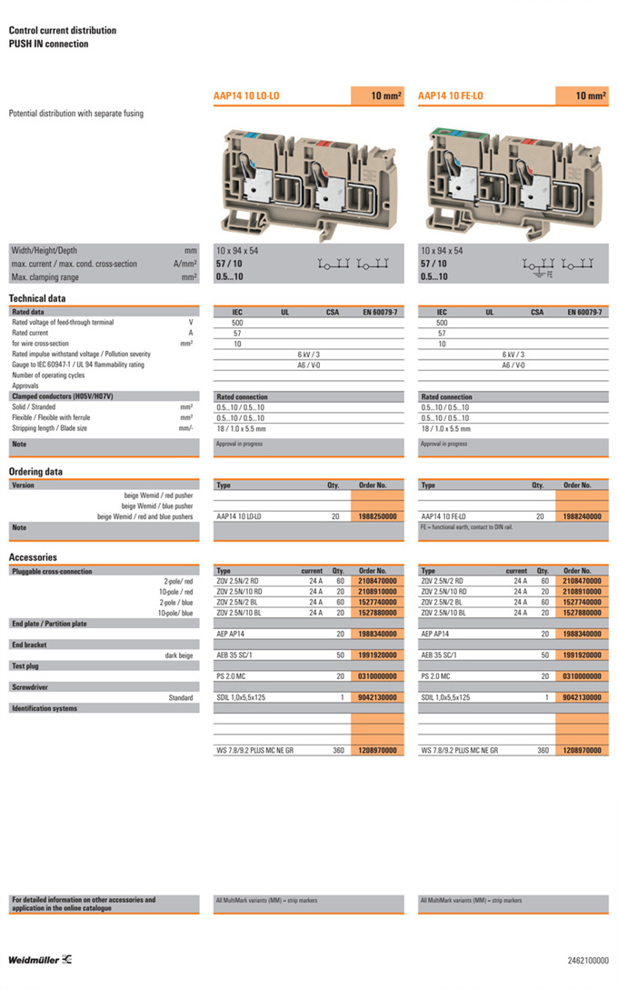»óǰ¸í : AAP14 10 FE-LO  Á¦Á¶¿ø:  Weidmuller ¹ÙÀ̵å¹Ä·¯