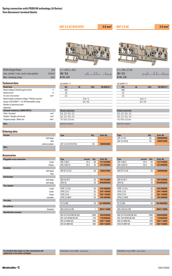 »óǰ¸í : ADT 2.5 3C W/O DTLV  Á¦Á¶¿ø:  Weidmuller ¹ÙÀ̵å¹Ä·¯