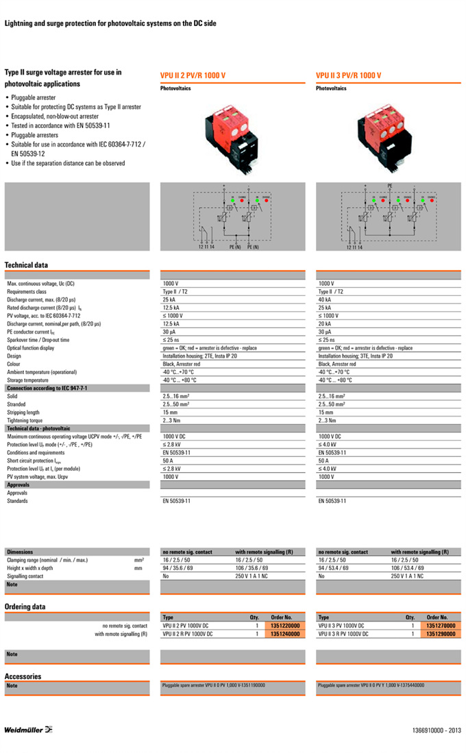 »óǰ¸í : VPU II 0 PV 1000VDC  Á¦Á¶¿ø:  Weidmuller ¹ÙÀ̵å¹Ä·¯