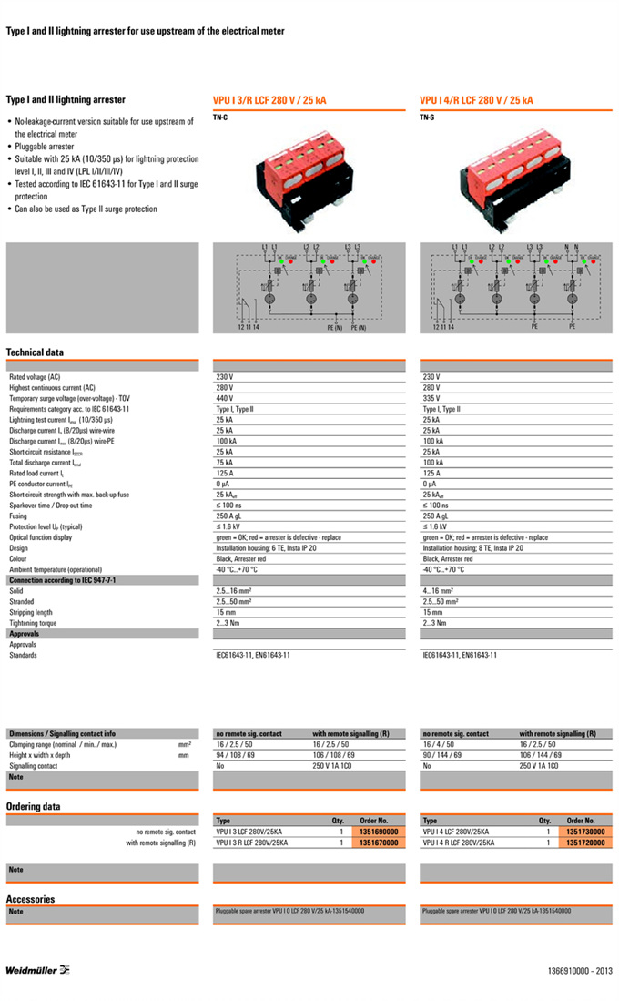 »óǰ¸í : VPU I 3 R LCF 280V/25KA  Á¦Á¶¿ø:  Weidmuller ¹ÙÀ̵å¹Ä·¯