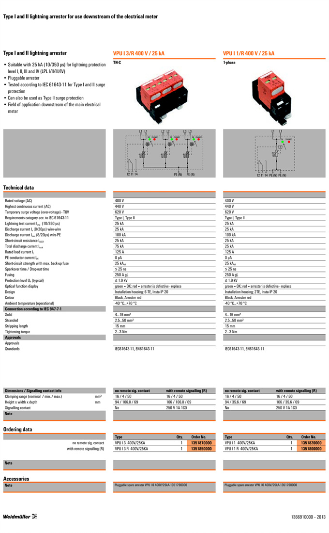 »óǰ¸í : VPU I 1 R 400V/25KA  Á¦Á¶¿ø:  Weidmuller ¹ÙÀ̵å¹Ä·¯
