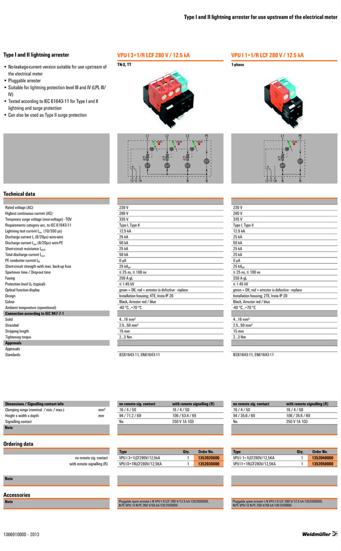 »óǰ¸í : VPU I 3+1LCF280V/12,5KA  Á¦Á¶¿ø:  Weidmuller ¹ÙÀ̵å¹Ä·¯