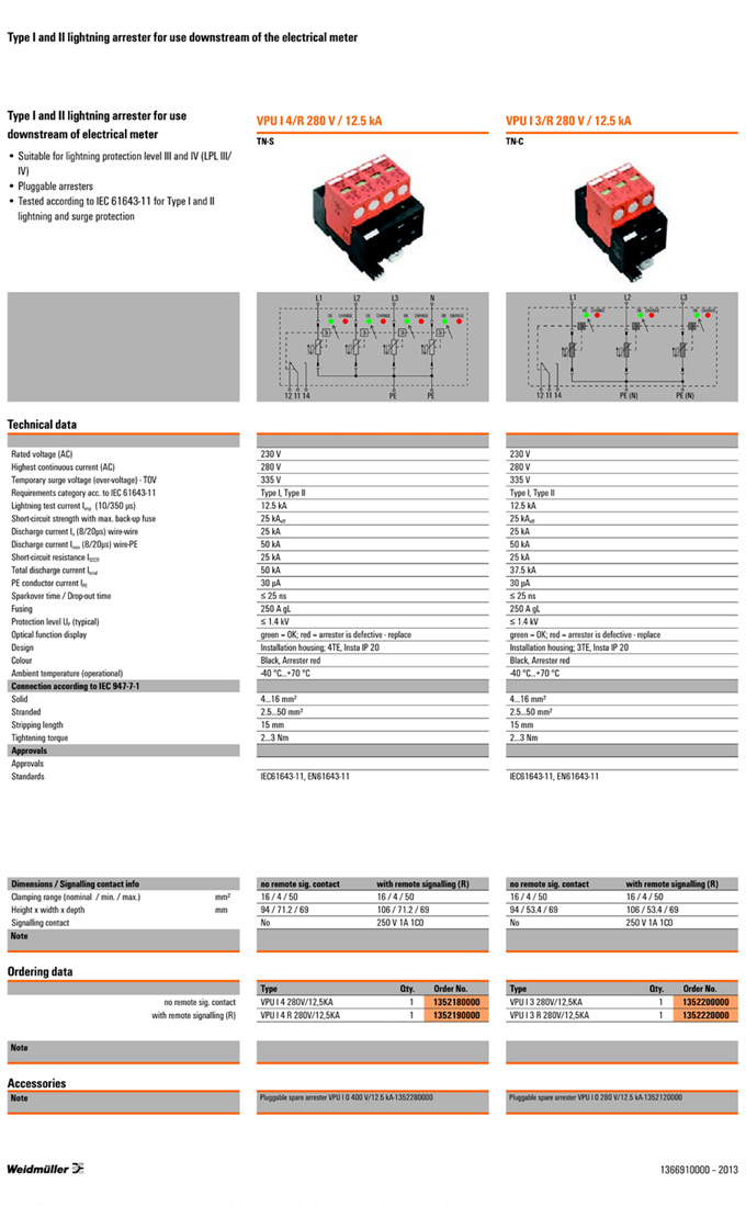 »óǰ¸í : VPU I 3 280V/12,5KA  Á¦Á¶¿ø:  Weidmuller ¹ÙÀ̵å¹Ä·¯