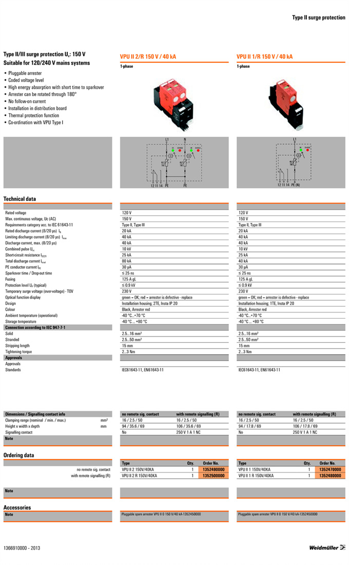 »óǰ¸í : VPU II 1 150V/40KA  Á¦Á¶¿ø:  Weidmuller ¹ÙÀ̵å¹Ä·¯