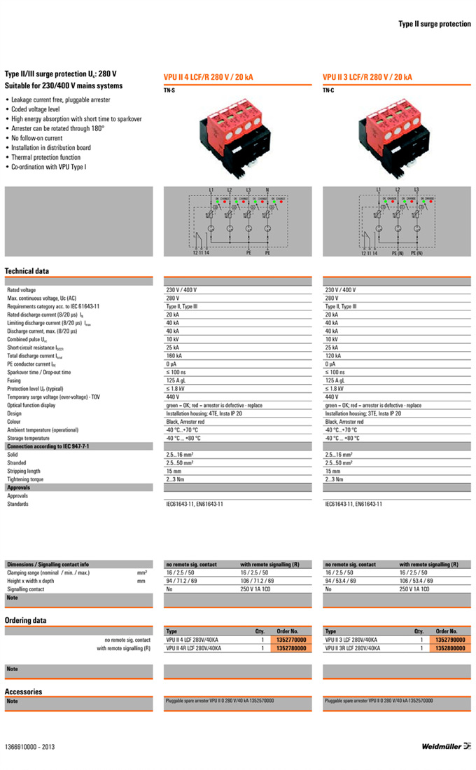 »óǰ¸í : VPU II 3R LCF 280V/40KA  Á¦Á¶¿ø:  Weidmuller ¹ÙÀ̵å¹Ä·¯