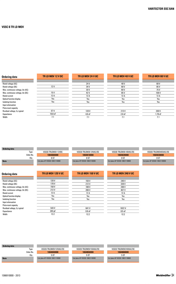 »óǰ¸í : VSSC6 TR MOV 240VUC  Á¦Á¶¿ø:  Weidmuller ¹ÙÀ̵å¹Ä·¯