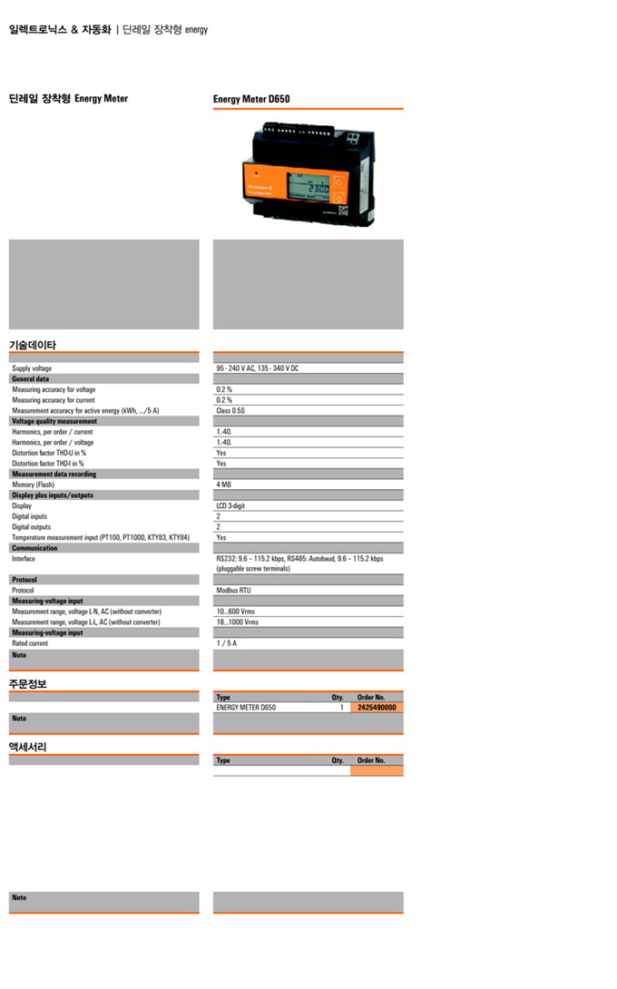 »óǰ¸í : ENERGY METER D650  Á¦Á¶¿ø:  Weidmuller ¹ÙÀ̵å¹Ä·¯